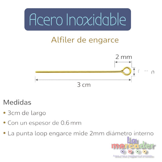 50 pz Alfiler de Engarce Dorado de Acero Inoxidable 3 cm | Loop 2 mm | Paquete para Bisutería Profesional