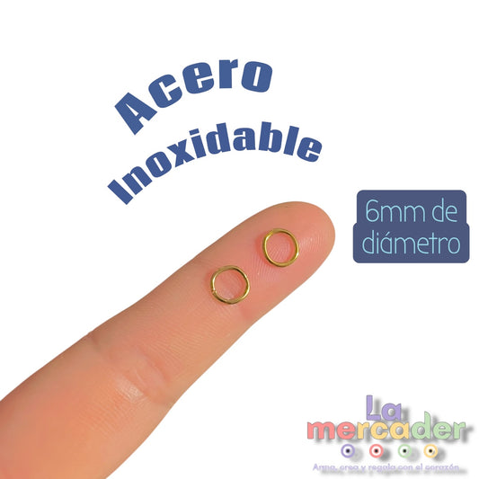 Argollas de Acero Inoxidable Dorado 6 mm x 0.8 mm | Paquete 100 pzs para Bisutería