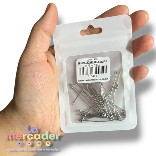 Alfileres de Acero Inoxidable Color Natural 4 cm x 0.6 mm | Paquete 50 pzs para Bisutería