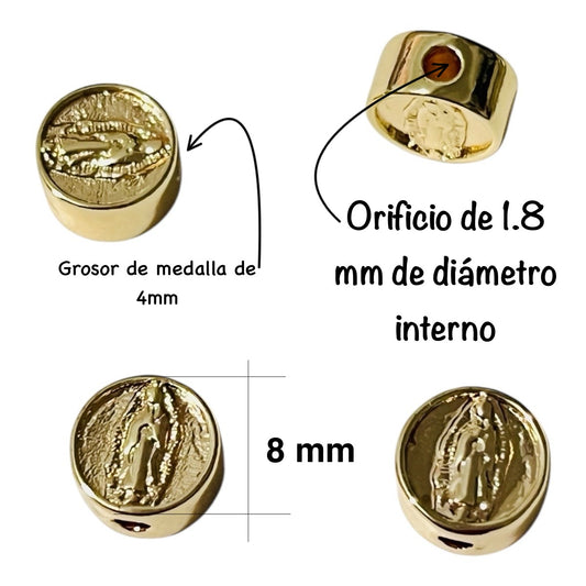 Cuenta Pastilla Virgen de Guadalupe Chapa de Oro 8mm