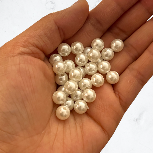 Perla #8 color beige, Perla para bisutería, permita sintética