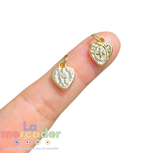 Dije Medalla Milagrosa Corazón Chapa de Oro 14k medalla de 10 mm | Amuleto de Protección
