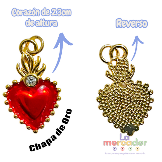 Dije Sagrado Corazón Rojo Chapa de Oro 2.3 cm | Charm Corazón Devocional con zirconia