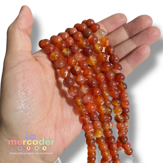 1 Tira Ágata Fuego #6 (60pz aprox) #8 (45pz aprox) Piedra Natural