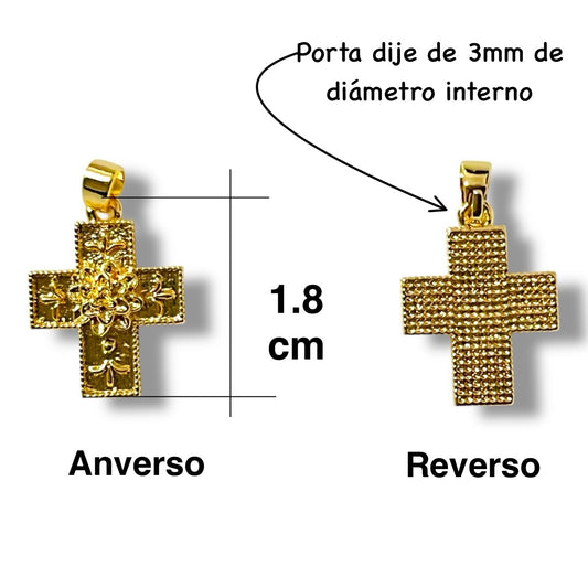 Dije de Cruz con Flor de Cempasúchil, Chapa de Oro 14k