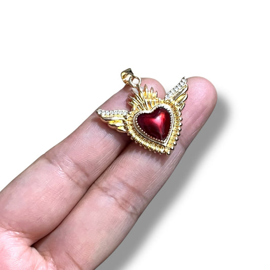 Dije Sagrado Corazón con Circonias, Chapa de Oro de 14k