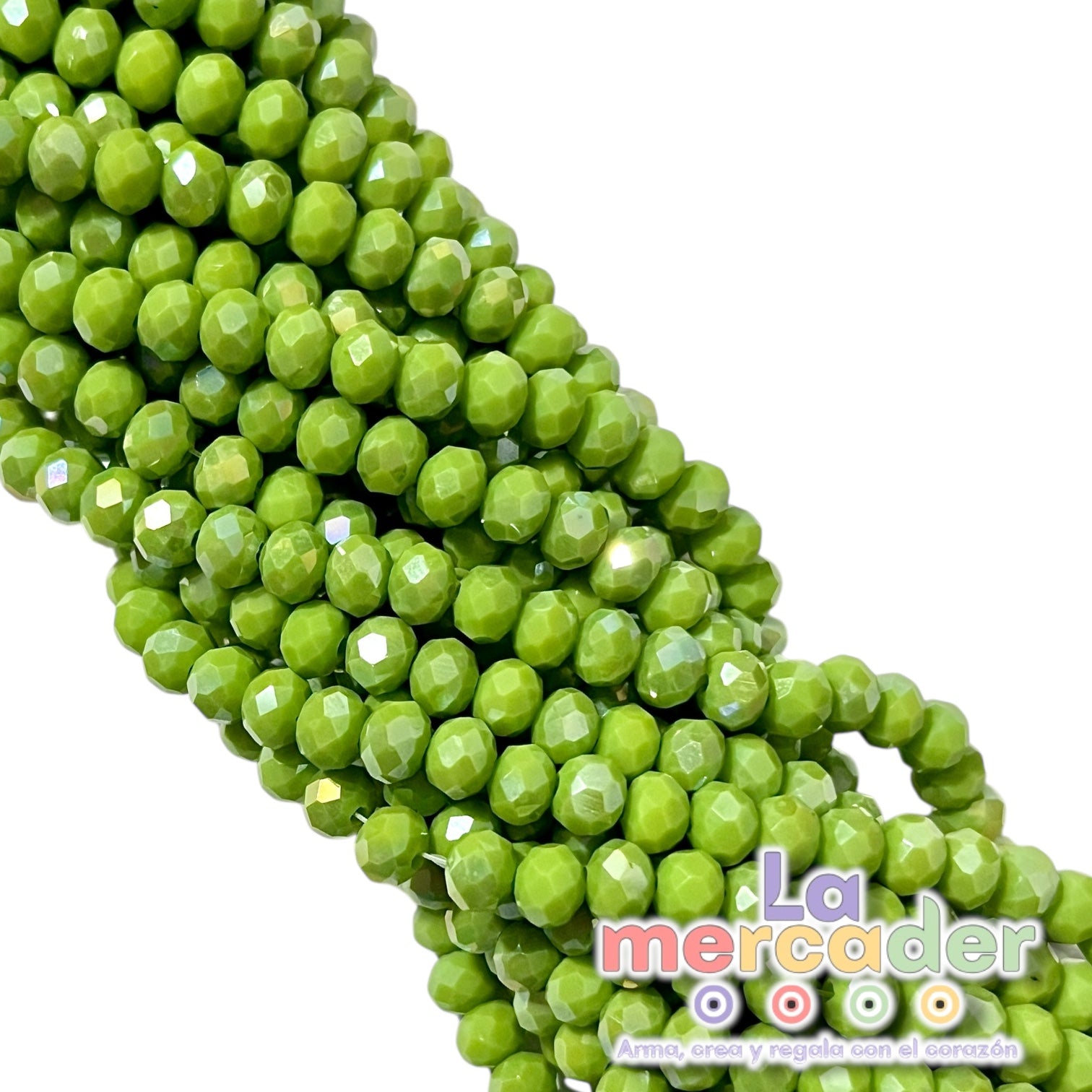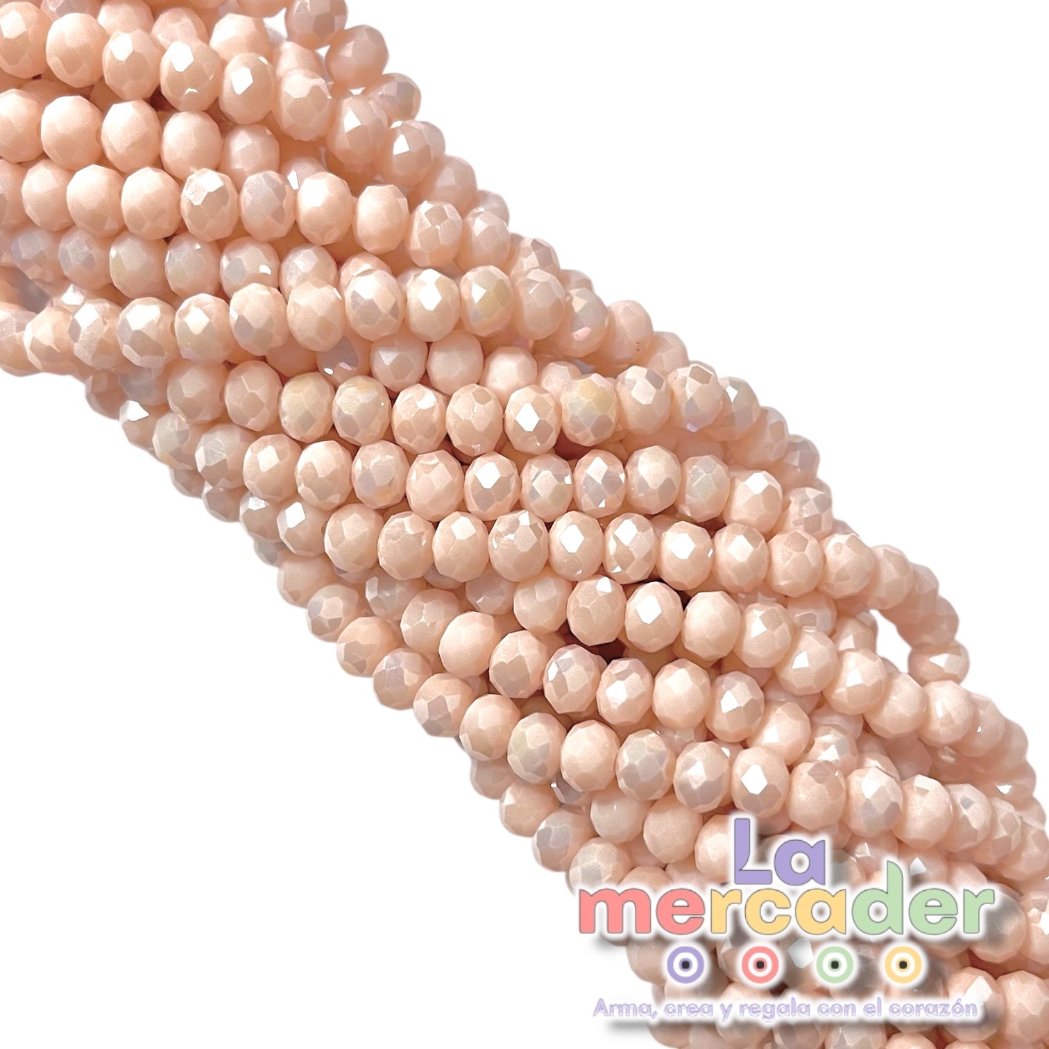Cada tira incluye cristal checo facetado de 6mm de diámetro, con aproximadamente 80 a 85 piezas por tira, ¡perfectas para dar vida a tus ideas! Se vende por tira completa Más de 100 colores diferentes para elegir: desde tonos suaves y pasteles hasta vibrantes y tornasolados Orificio de 1mm aprox., ideal para hilo elástico, nylon o alambre fino Úsalo para pulseras, aretes, collares, llaveros o decorar moños. Arma, crea y regala con el corazón...