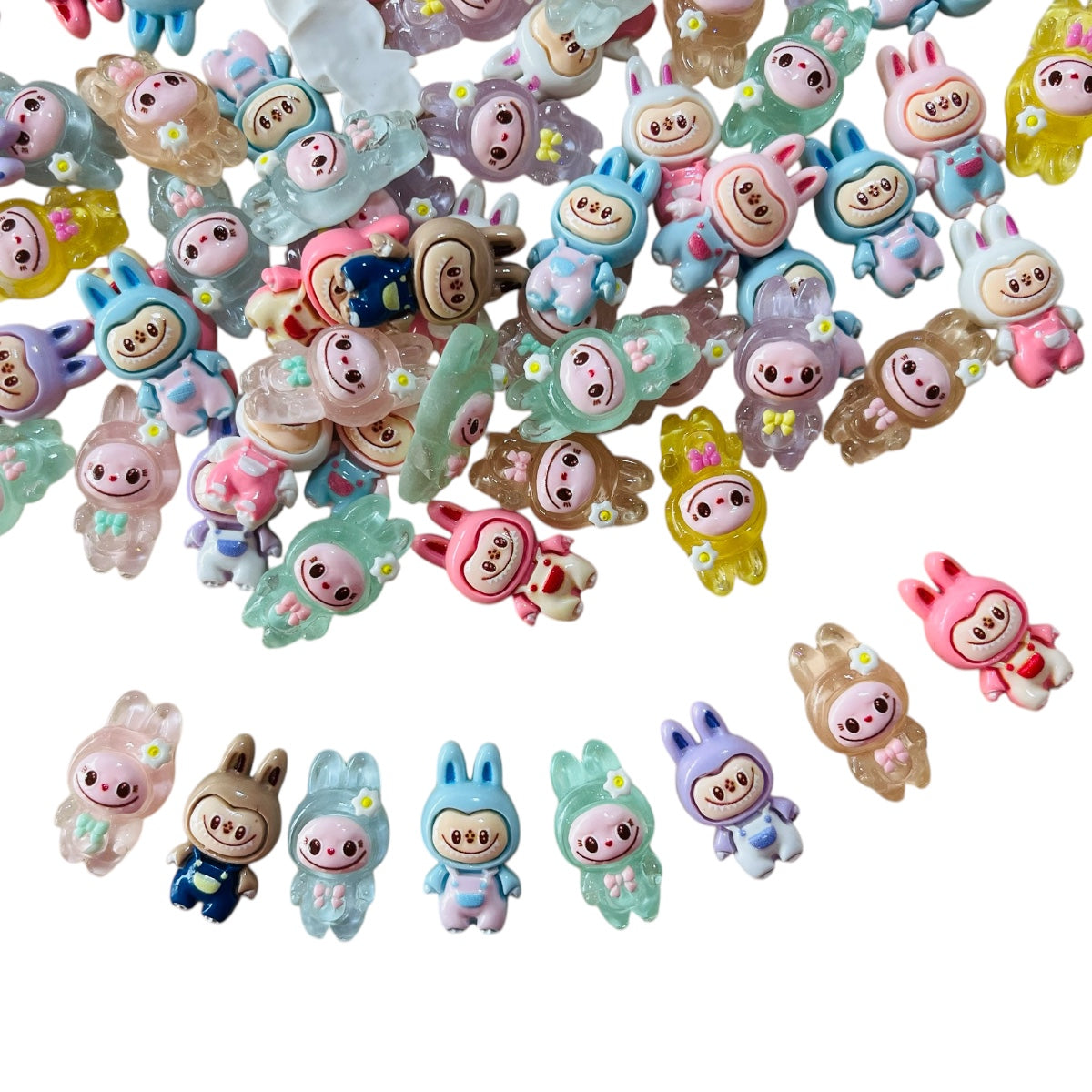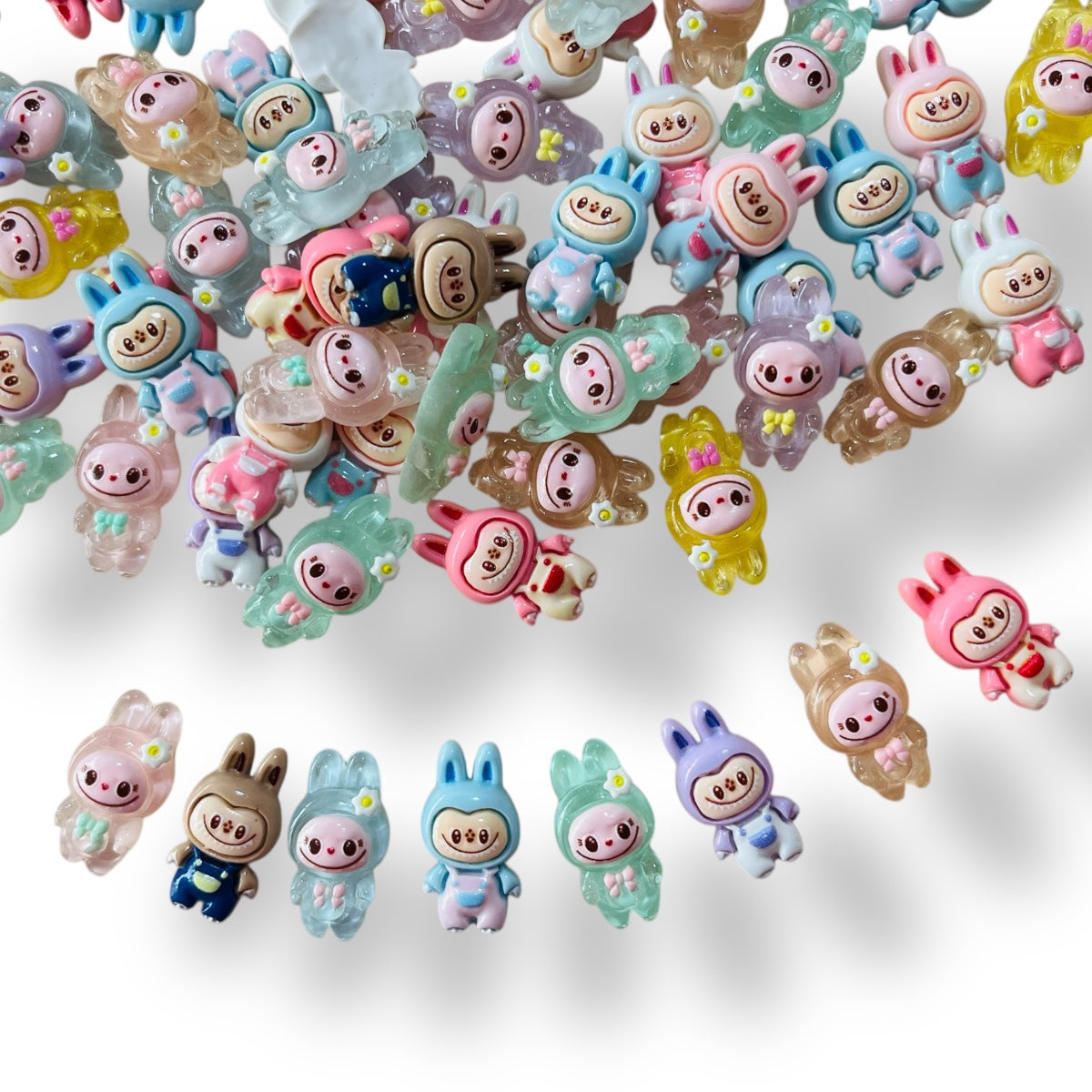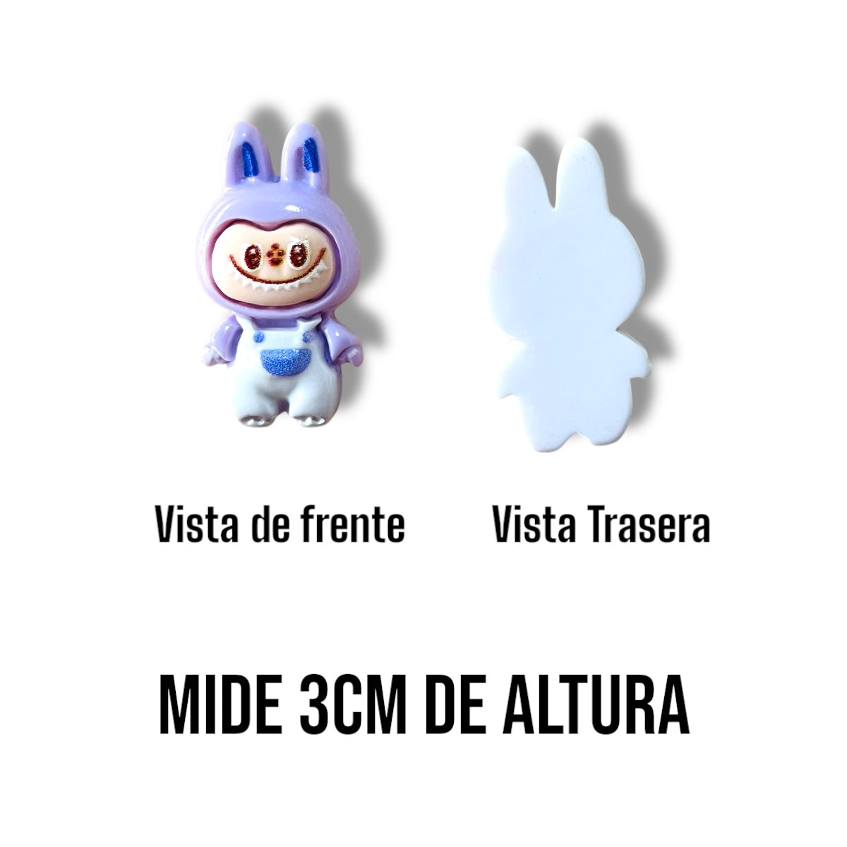 ¡Haz tus propios diseños con estos dijes Labubu! Hechos de resina de 3cm de altura, pueden ser pegados en cualquier superficie. ¡Deja volar tu creatividad!