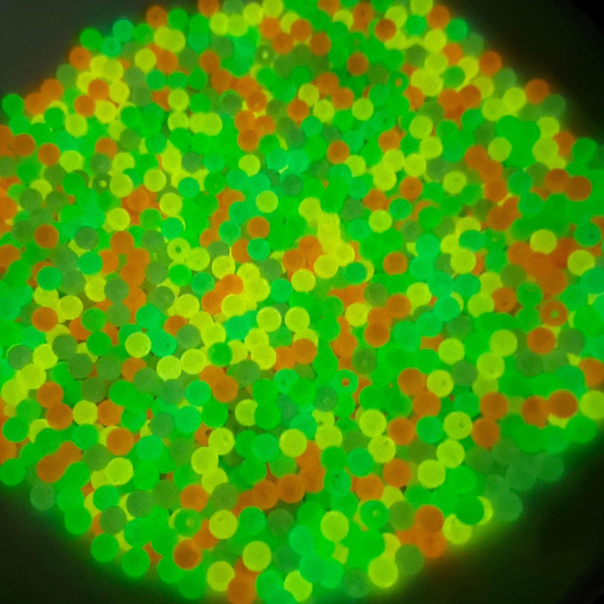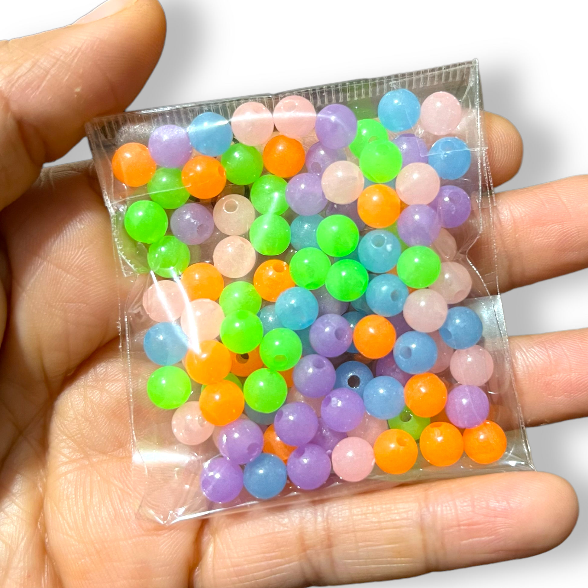 las bolitas vienen en 5 colores mezclados arbitrariamente ( lila, rosa, verde, naranja,azul)