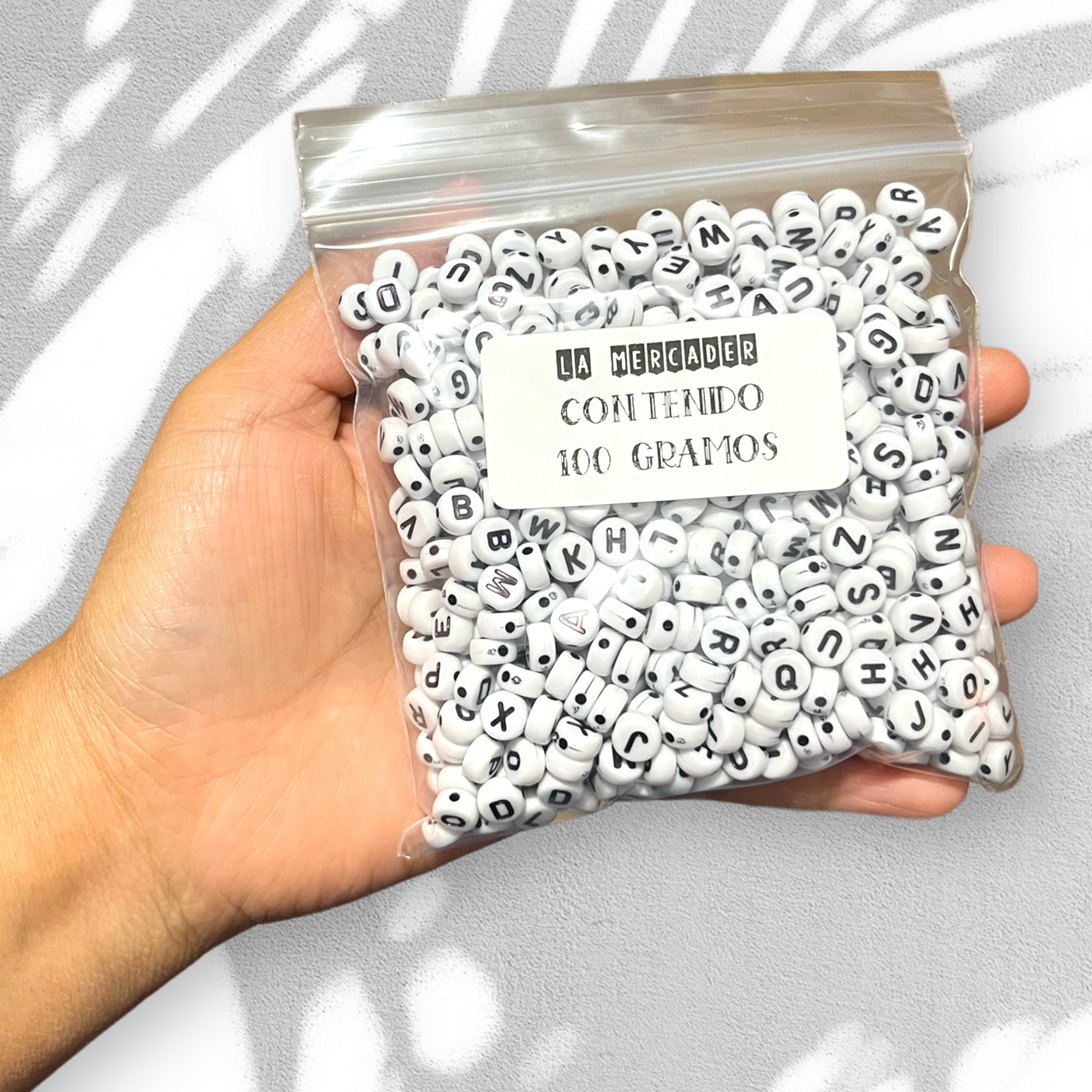 100 gramos de letras blanco y negro, letras para pulseras las cuentas miden