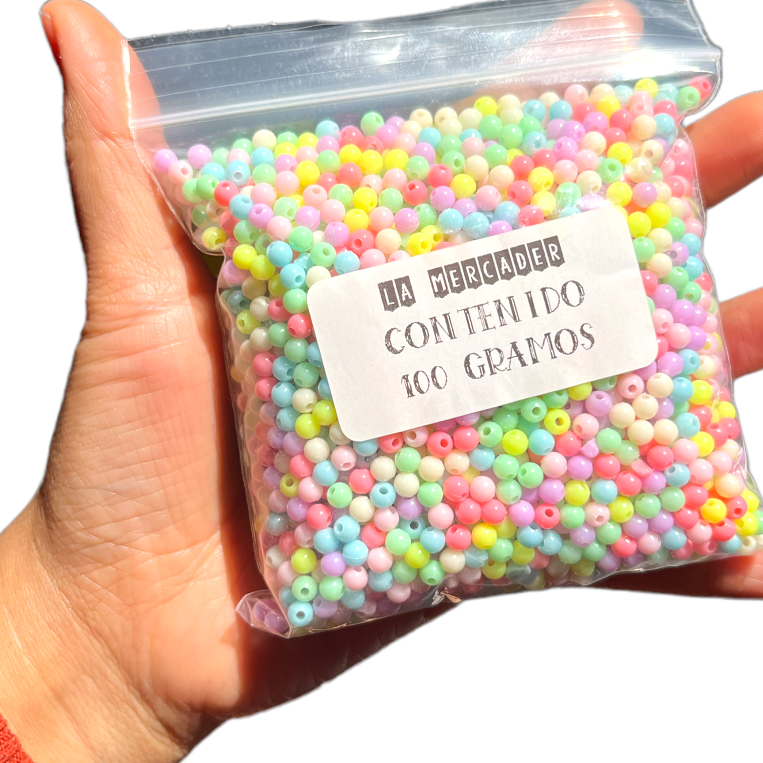 La bolita mide 4 milímetros de diámetro con un orificio transversal de 1.2 milímetros de diámetro