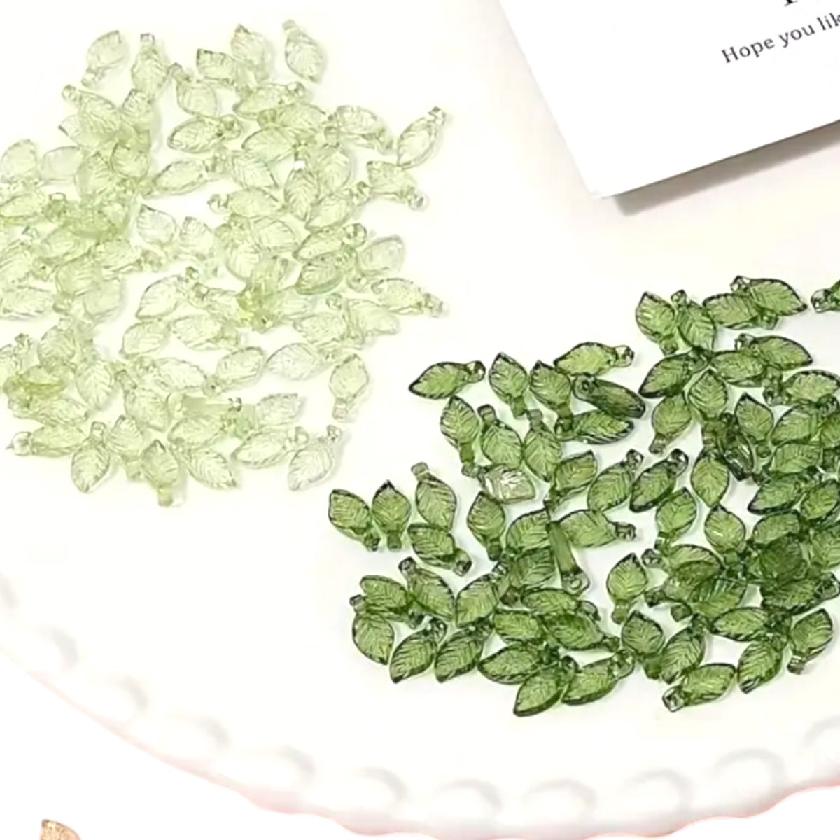 100 unidades de hojitas verdes para el armado de accesorios de bisutería