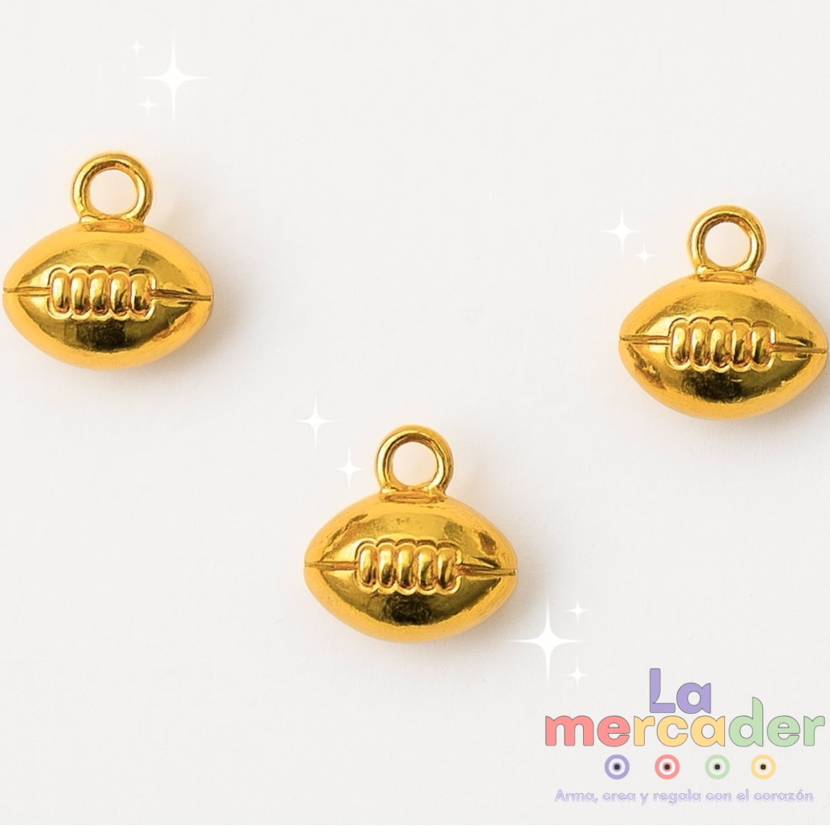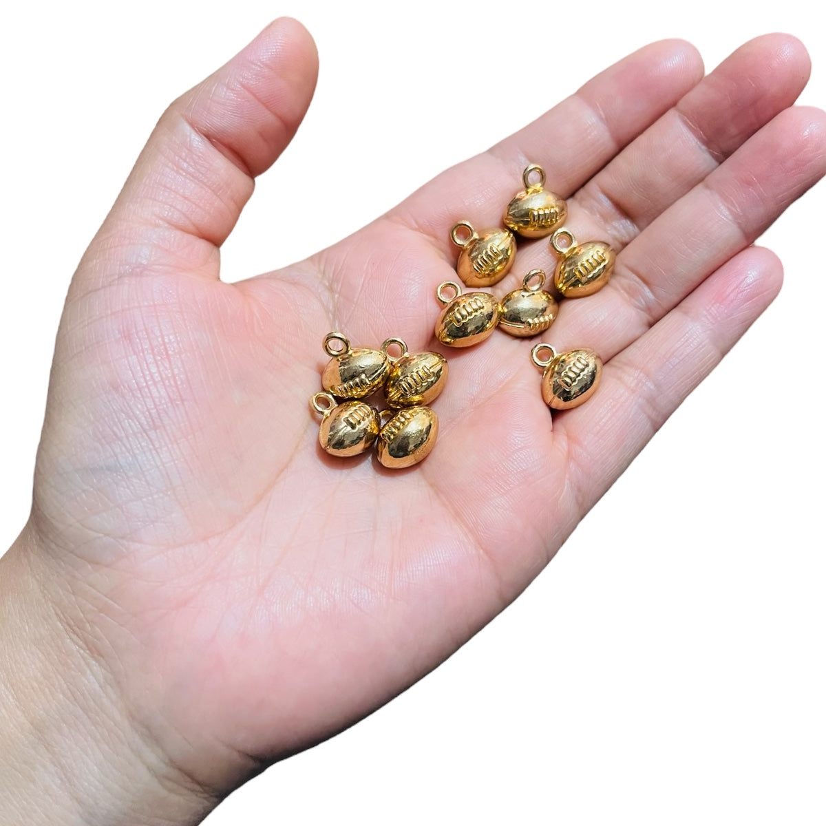 Dale un toque deportivo y brillante a tus creaciones con este lindo dije en forma de balón americano. Perfecto para pulseras, collares, llaveros o accesorios personalizados.