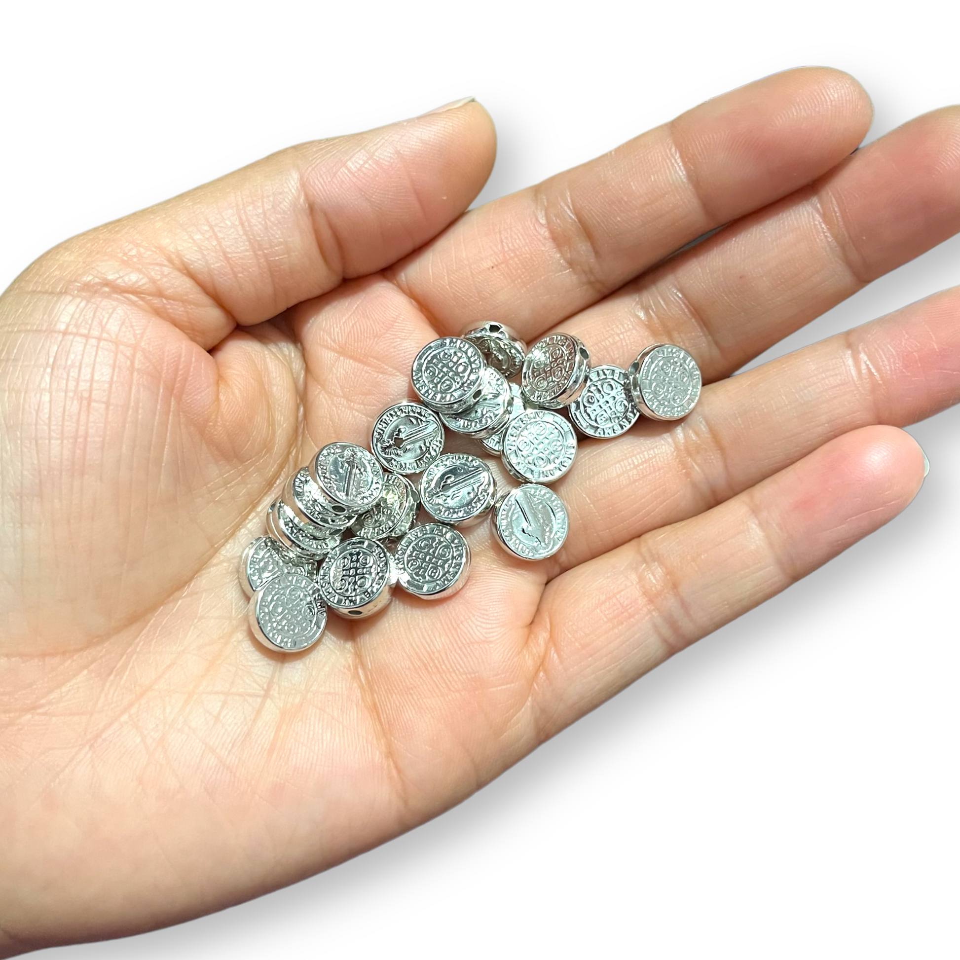 50 piezas de dijes tipo pastilla de medalla de San Benito, los dijes miden: