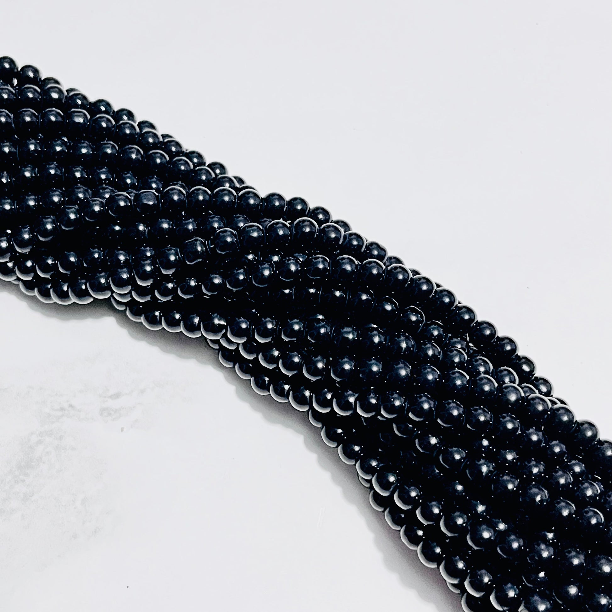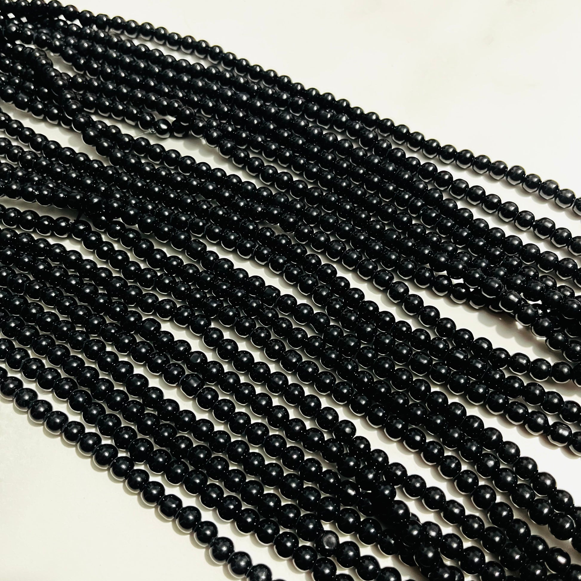 4 tiras con aproximadamente 140 piezas cada tira de perlas negras, perlas para bisutería elaboradas en pasta ideal para decorar tus accesorios