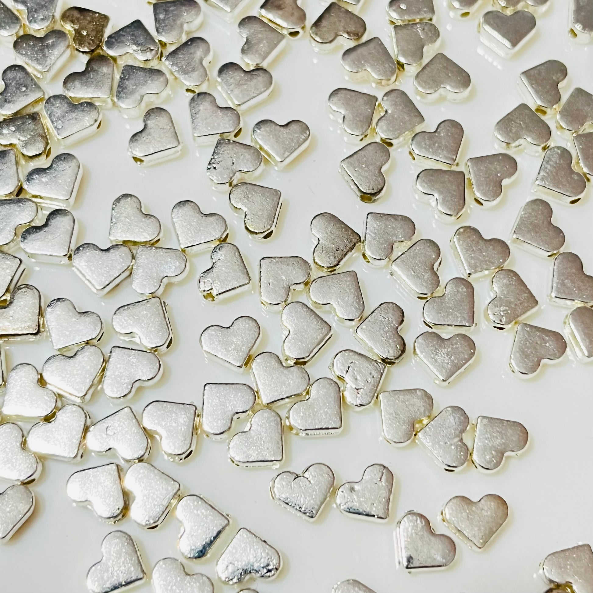 Corazones metálicos disponibles en oro y plata,con las siguientes medidas: