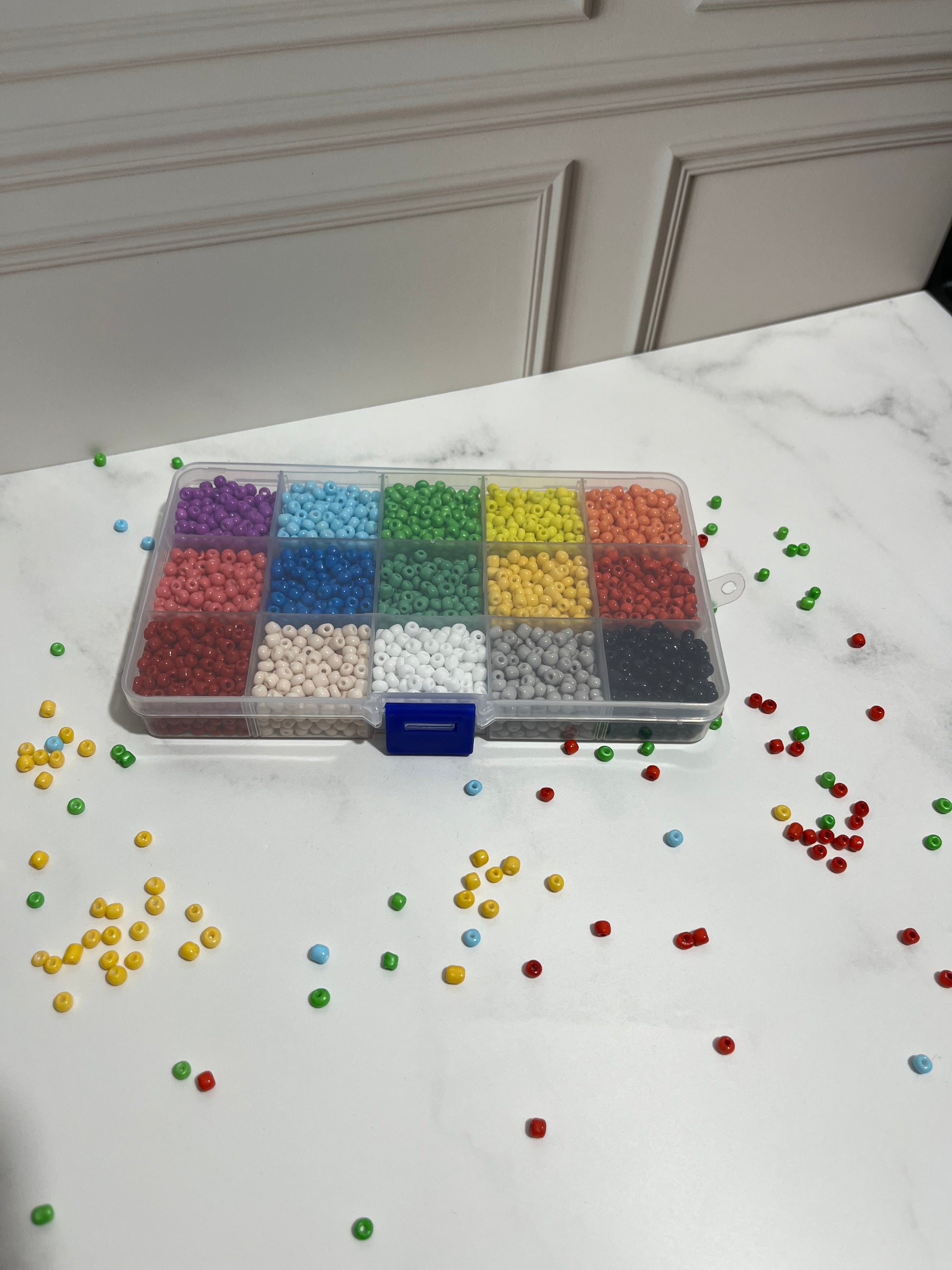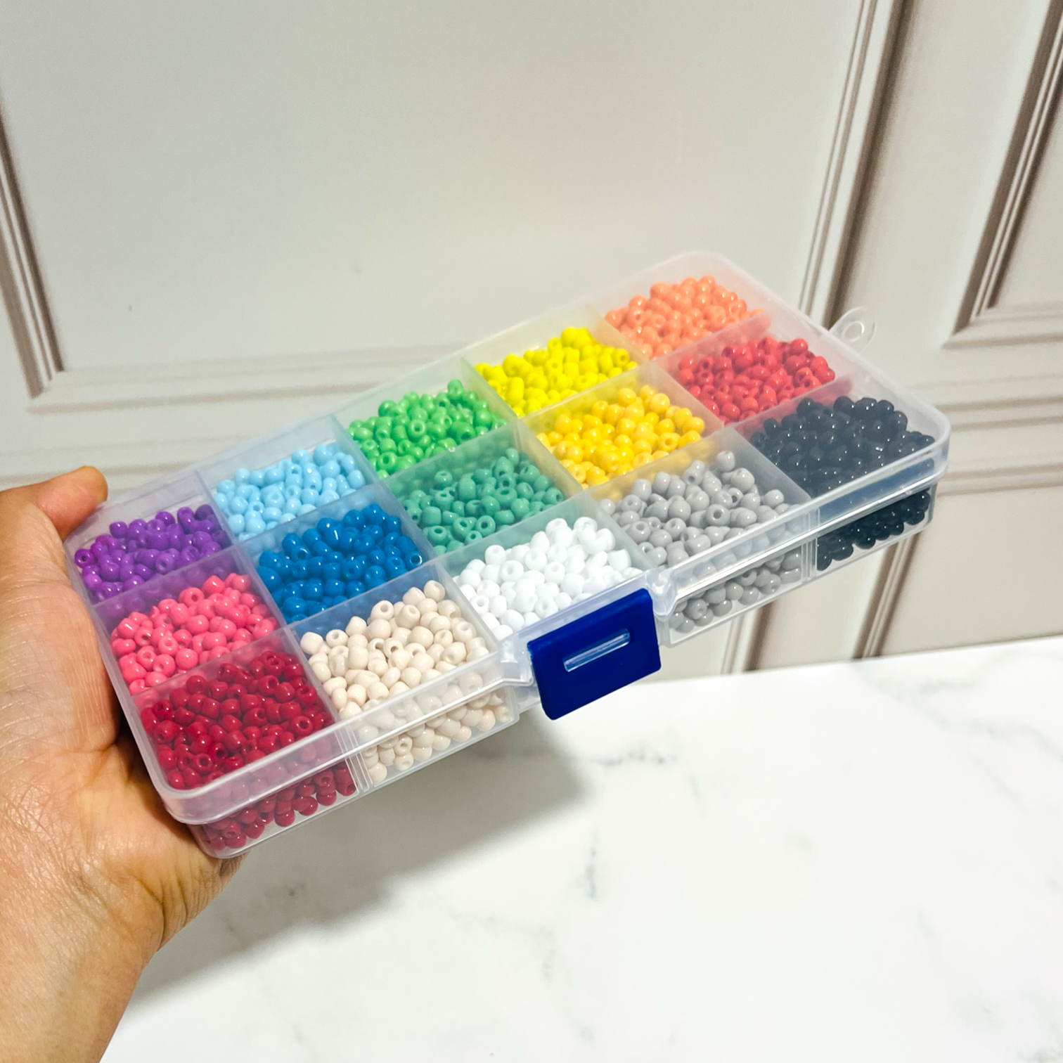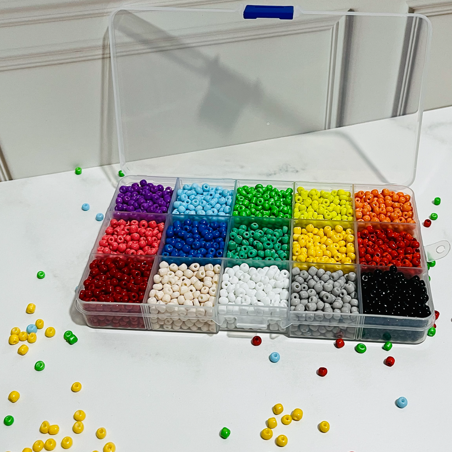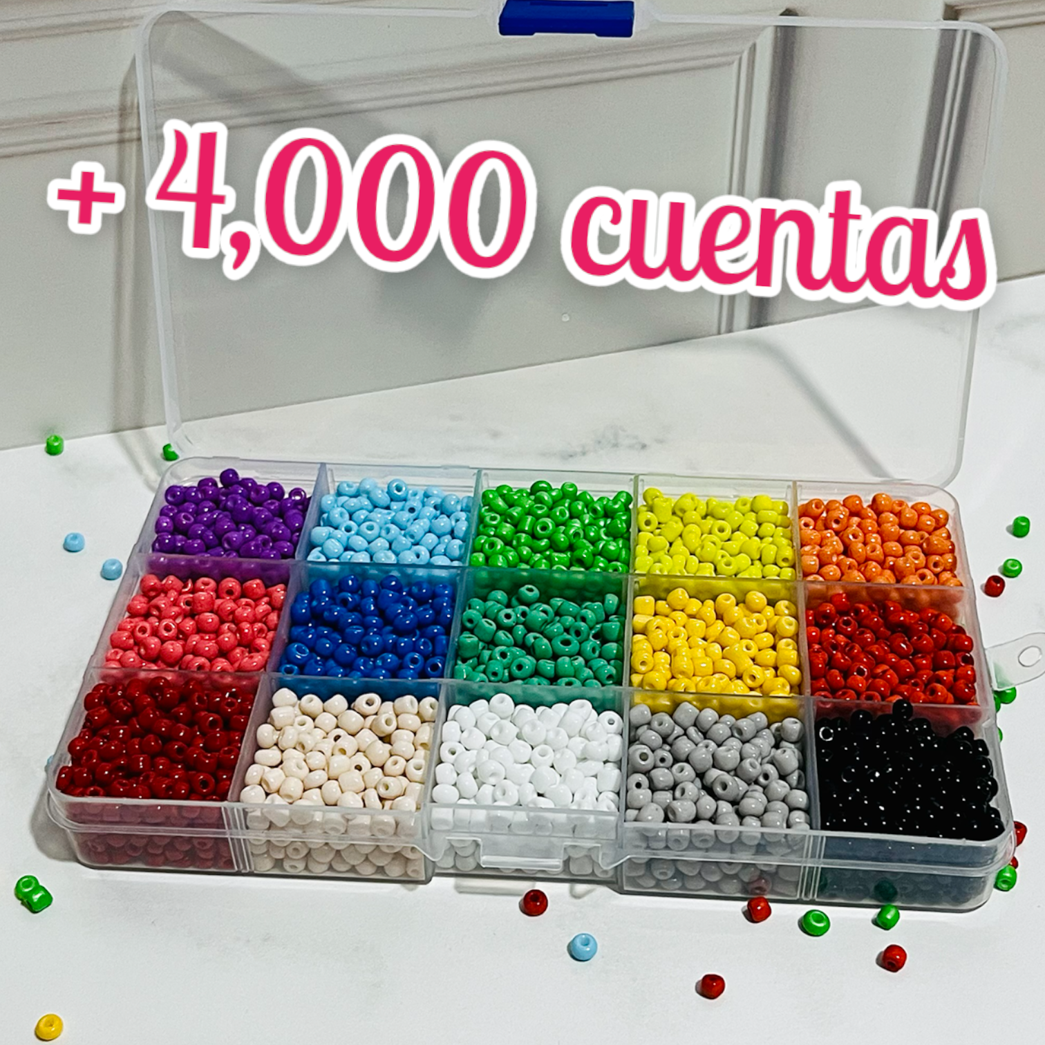 Kit +4000 cuentas para pulseras, caja con chaquiron de colores