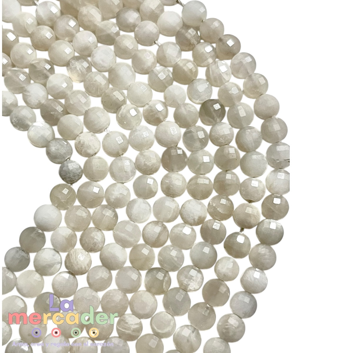 Piedra Luna Blanca Facetada | Luneta 6 mm- 20 cuentas
