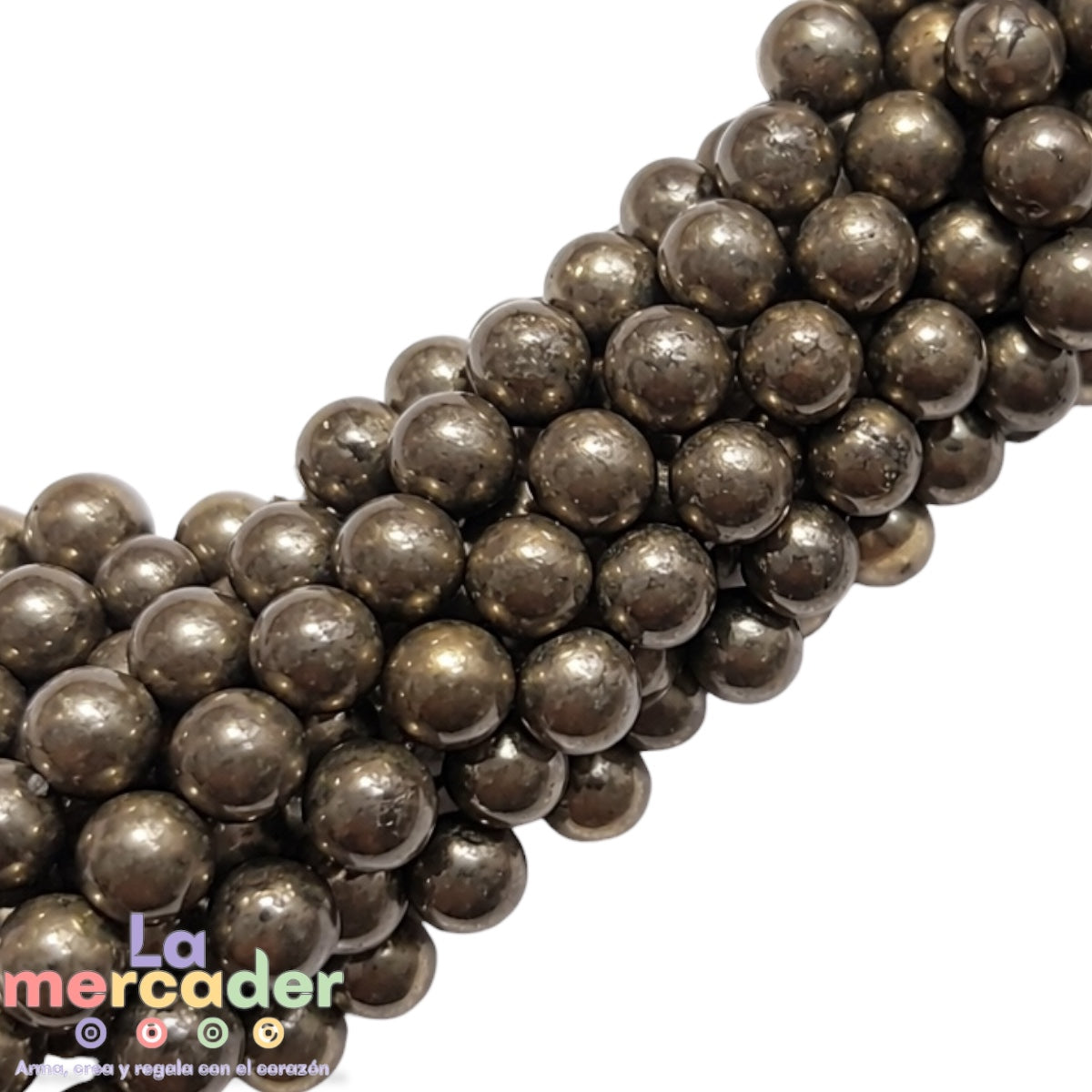 Cuentas de pirita natural en bola pulida, ideales para pulseras, collares y piezas con intención. Su brillo metálico eleva cualquier diseño y aporta un toque poderoso, elegante y profesional.